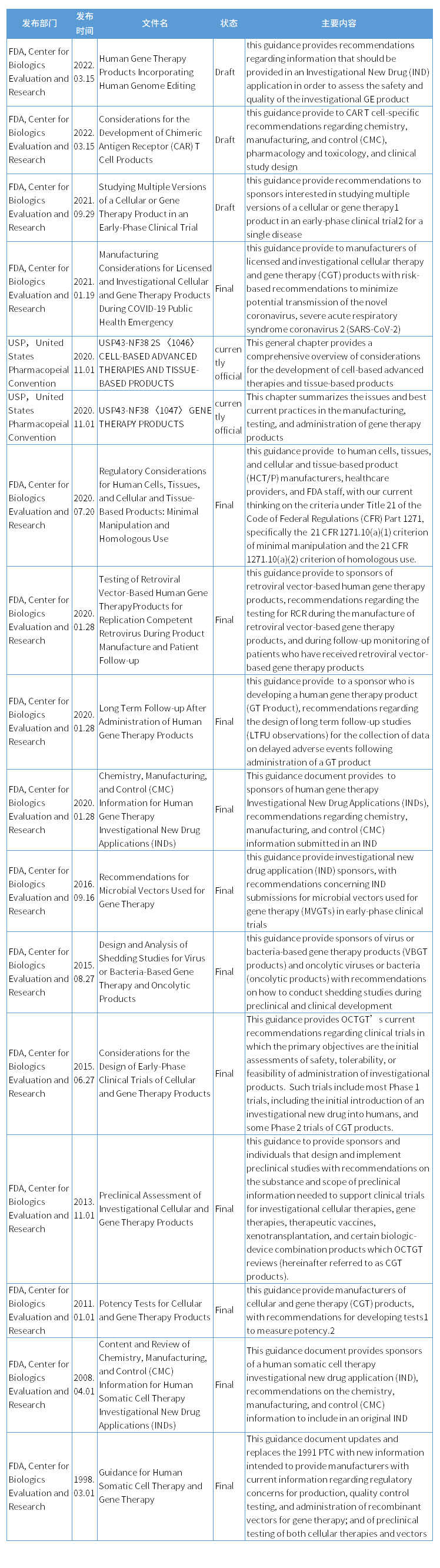 以下為國內現行相關的主要參考指導文件,感興趣的小伙伴可去公眾號后臺(tai)回復“CGT法規”,下(xia)載相關文(wen)件(jian)原件(jian)。